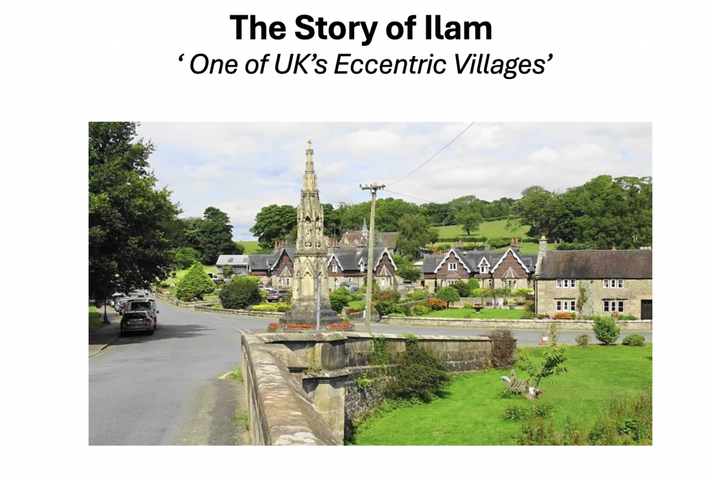 A very well attended meeting to hear local historian and member of the Society talk about Ilam, one of his own favourite places, and a village which was selected by Guardian readers as being one of Britain’s most eccentric villages. We learnt about its evolution from the stone age to the present day and the reason behind its chalet style cottages and the different phases of Ilam Hall.